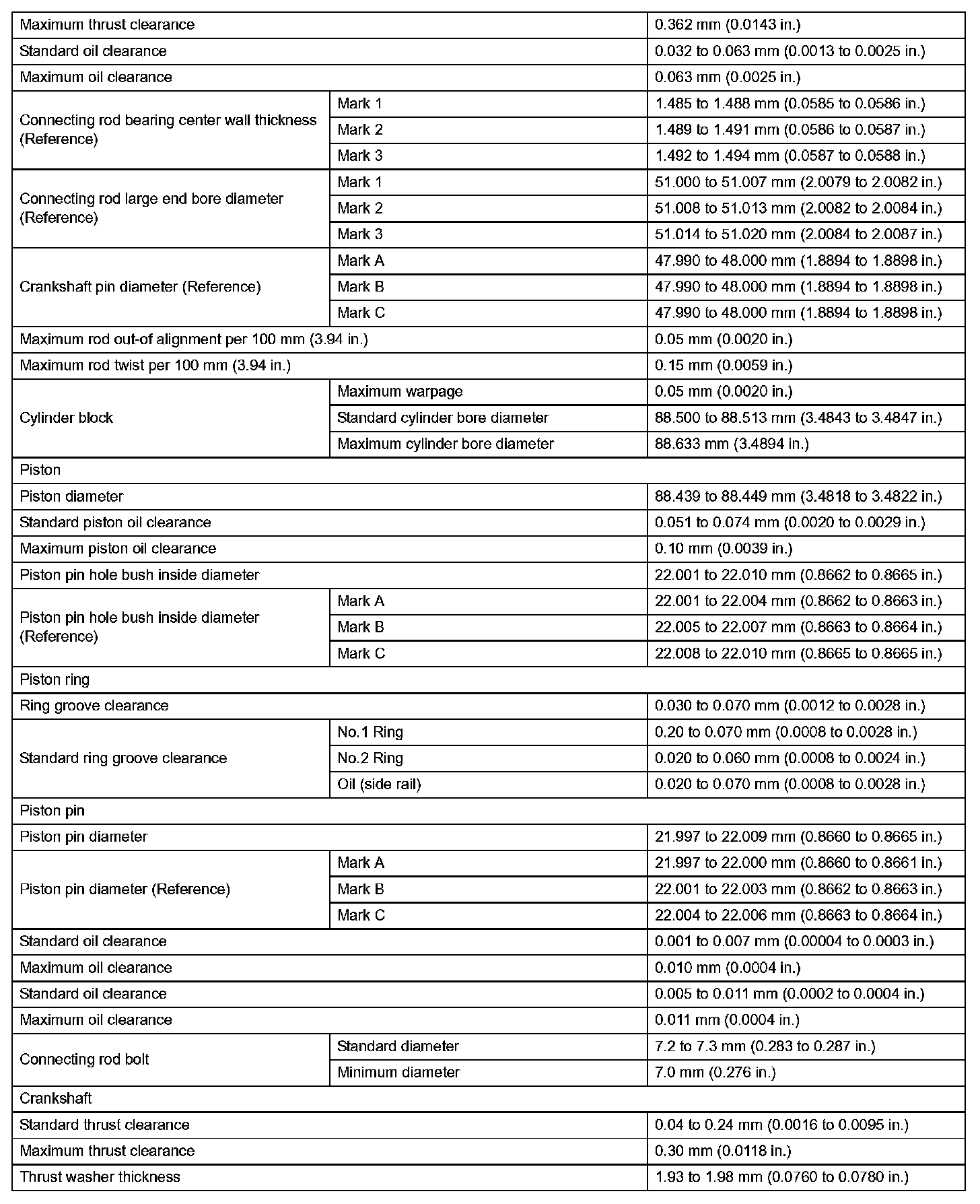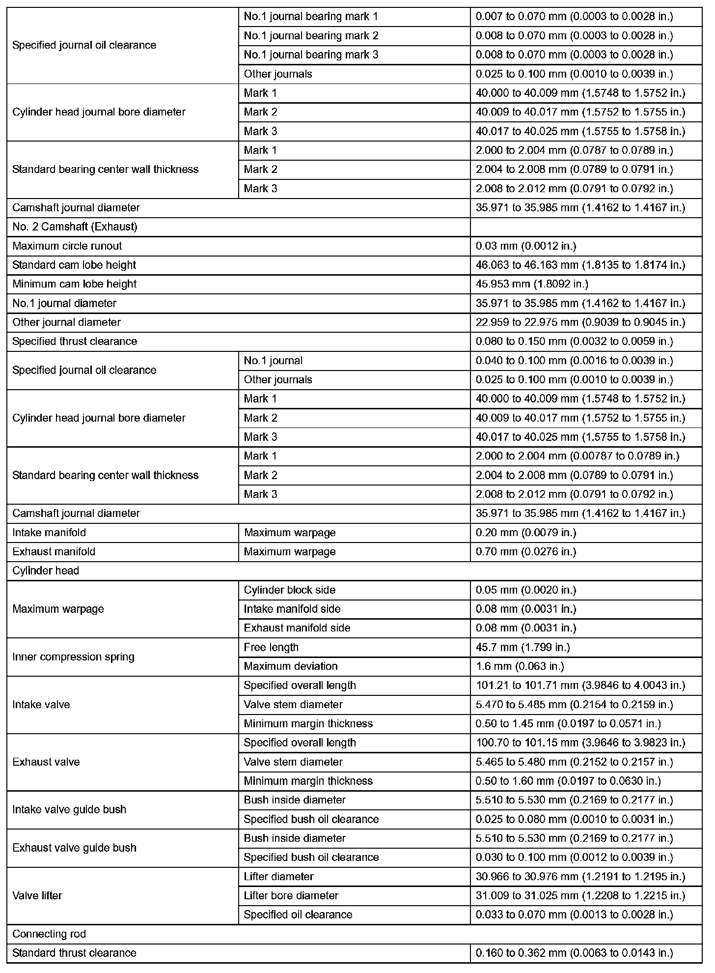 Engine Mechanical - Service Data (Part 2):