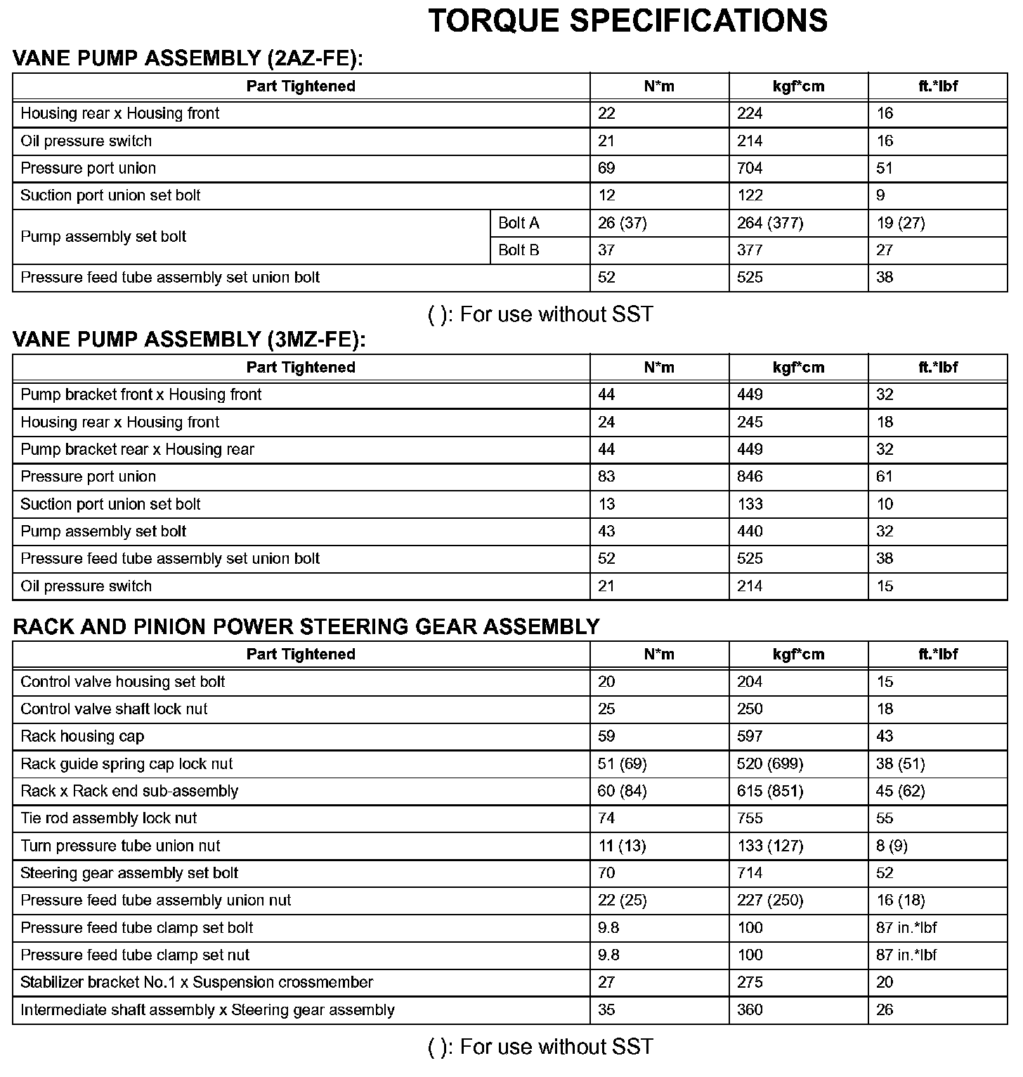Power Steering - Torque Specifications: