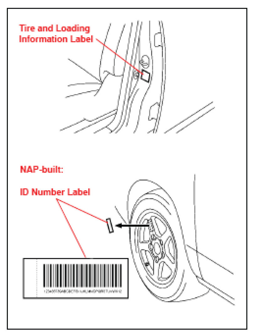 2. Remove the ID number labels that are attached to each wheel and place the labels in the glove box.