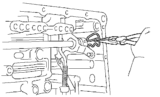 (a) Using a needle-nose pliers, remove the manual valve lever shaft retainer spring.
