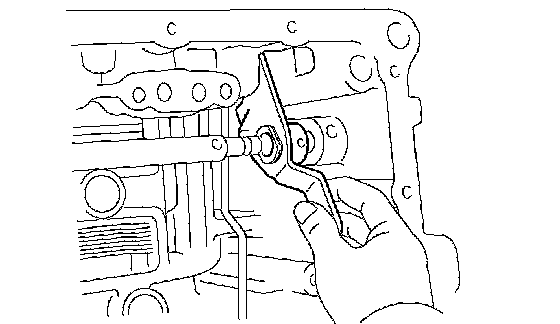 (c) Remove the manual valve lever shaft and manual valve lever.