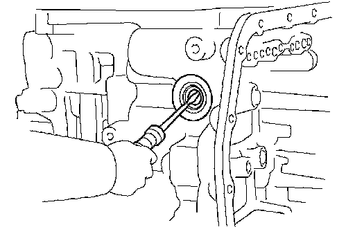 (a) Using a screwdriver, remove the oil seal from the transaxle case.