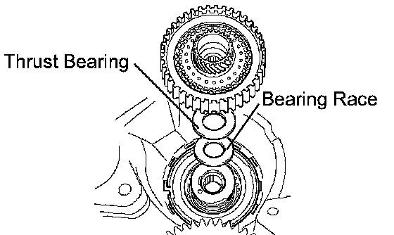 (b) Remove the thrust needle roller bearing and thrust bearing race from the rear planetary sun gear assembly.