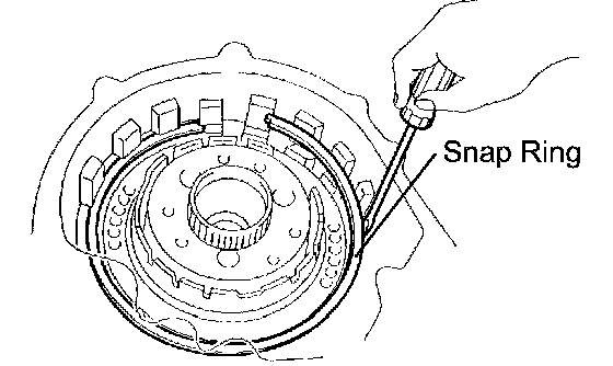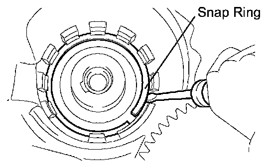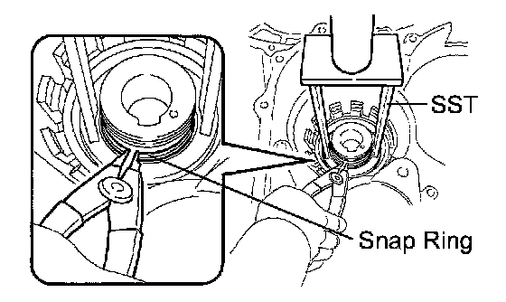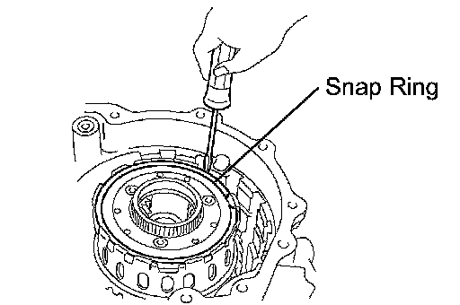 (a) Using a screwdriver, remove the snap ring from the transaxle case.