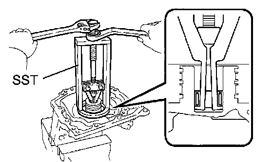 (a) Using SST, remove the underdrive cylindrical roller bearing from the transaxle case.