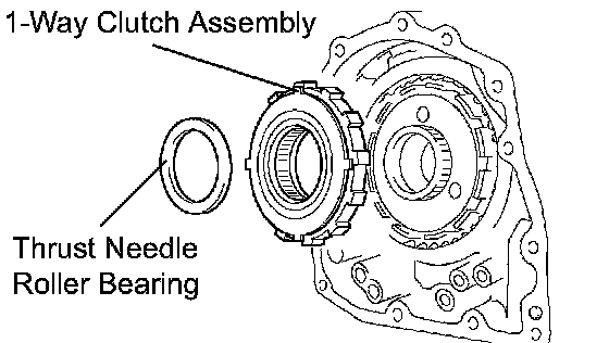 (a) Remove the 1-way clutch assembly and the thrust needle roller bearing from the transaxle case.