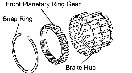 (a) Using a screwdriver, remove the snap ring and front planetary ring gear from the brake hub.