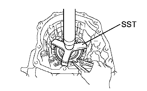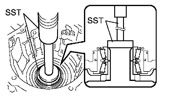 (a) Using SST, remove the needle-roller bearing from the transaxle case.
