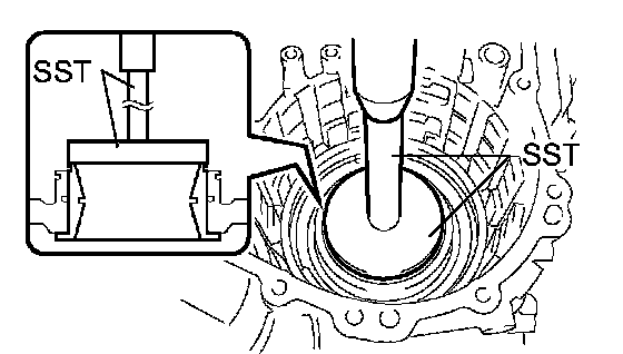 (a) Using SST, remove the needle-roller bearing from the transaxle rear cover.