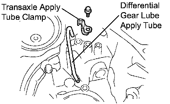 (a) Remove the bolt, transaxle apply tube clamp and differential gear lube apply tube from the transaxle housing.