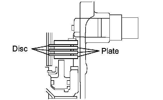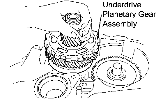 NOTICE: Engage all the discs of underdrive clutch and hub splines of the underdrive planetary gear assembly firmly and assemble them securely.