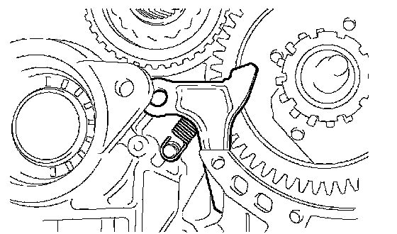 (b) Temporarily install the parking lock pawl, shaft and spring to the transaxle case, as shown in the illustration.
