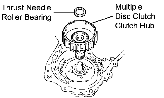(b) Coat the thrust needle roller bearing and race with yellow petrolatum, install them onto the multiple disc clutch hub.