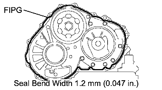 NOTICE: Concerning about the amount of the FIPG application, the amount should be controlled to from even sealing film on entire flange surface and have slight protrusion of the FIPG all around of the connecting area. The FIPG shall be applied continuously on the flange.