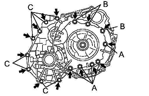 (c) Install the transaxle housing and 16 bolts to the transaxle case.
