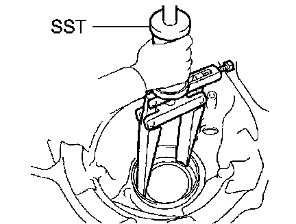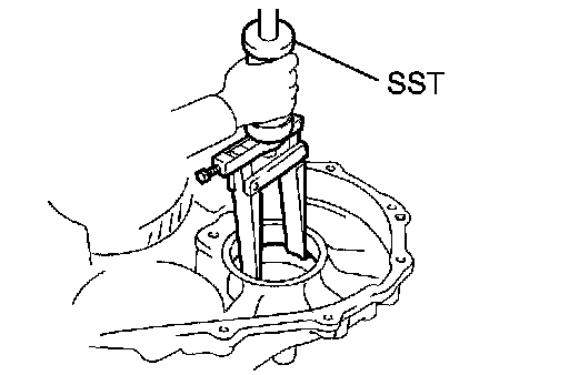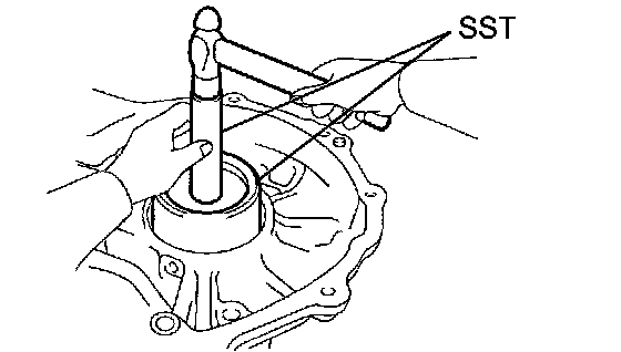 (b) Using SST, remove the front differential case front tapered roller bearing outer race.