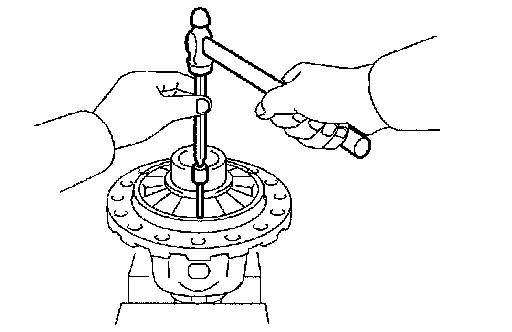 (b) Using a chisel and hammer, stake the differential case.