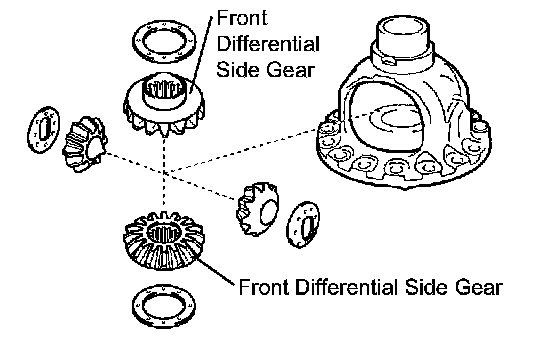 (a) Remove the 2 front differential pinions, 2 pinion thrust washers, 2 front differential side gears and 2 side gear thrust washers from the differential case.