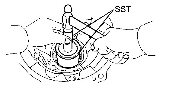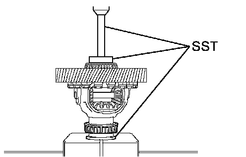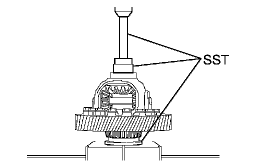 (d) Using SST, turn the differential assembly right and left 2 or 3 times to settle the bearing.