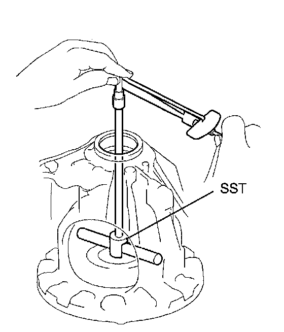 (e) Using SST and a torque wrench, measure the turning torque of the differential.