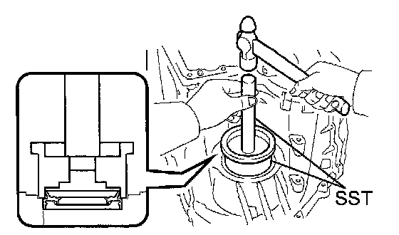 (a) Using SST and a hammer, drive into a new oil seal.