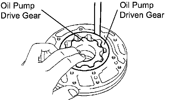 (c) Using a feeler gauge measure the tip clearance between the driven gear teeth and drive gear teeth.