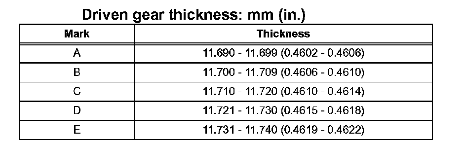 Drive Gear Thickness: mm (inch) (Part 2):
