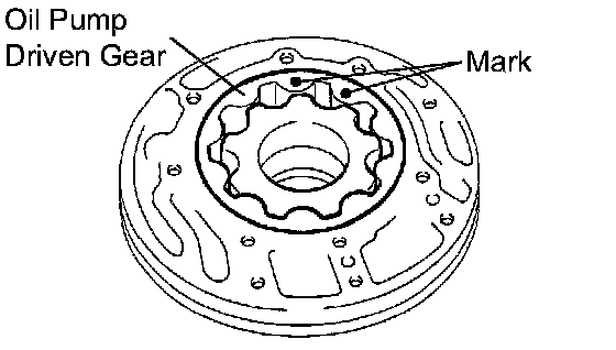 (a) Coat the front oil pump driven gear with ATF WS, install it to the oil pump body with the marked side up.