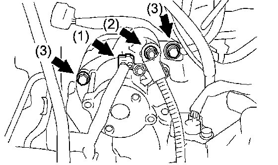 (c) Remove the 2 bolts and starter assembly (3).