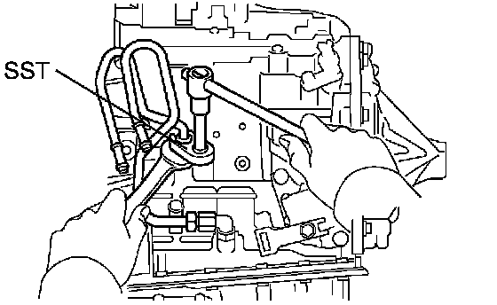 (a) Using SST and a wrench, disconnect the oil cooler inlet tube No. 1.