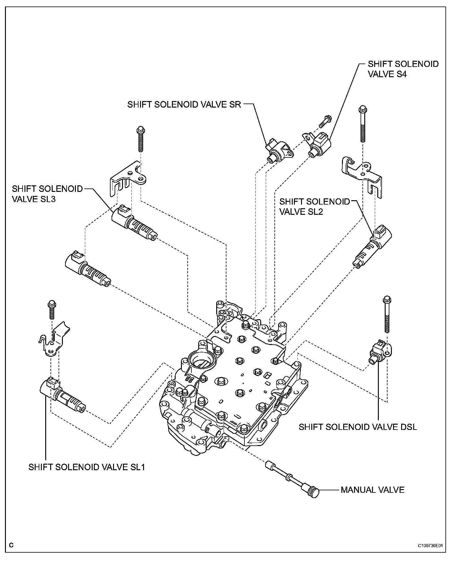 5. REMOVE SHIFT SOLENOID VALVE DSL