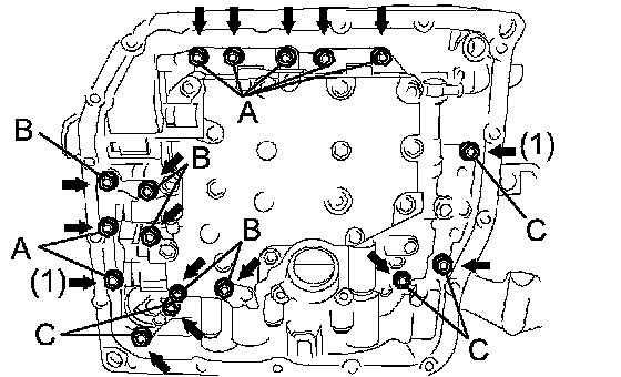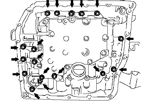 (a) Support the valve body assembly and remove the 17 bolts and the valve body assembly.