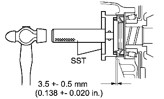 (b) Using SST and a hammer, install the oil seal.