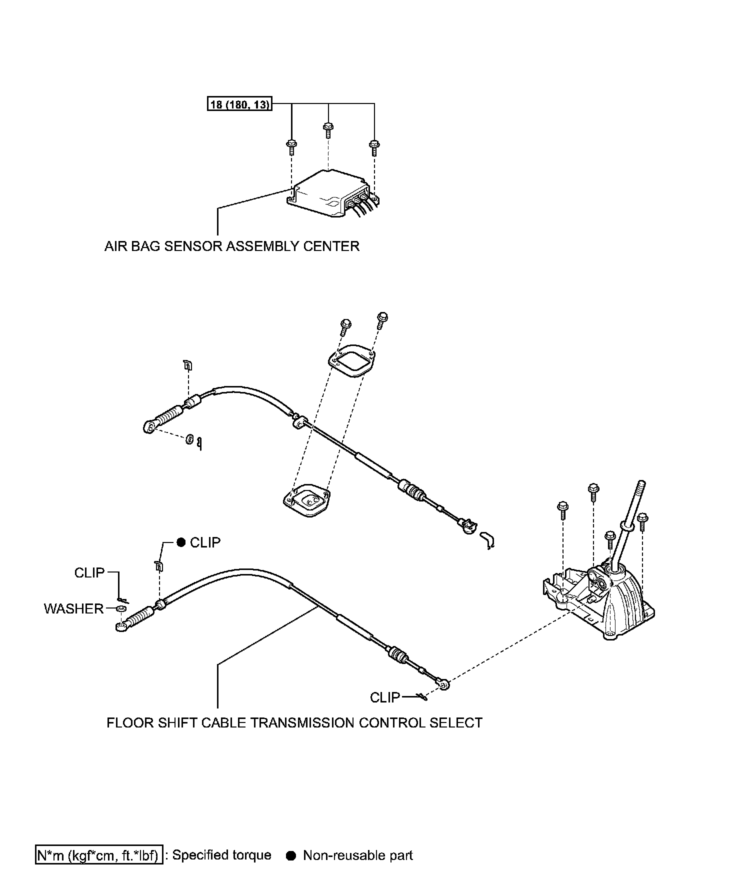 4. REMOVE FLOOR SHIFT CABLE TRANSMISSION CONTROL SELECT