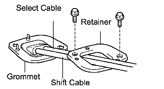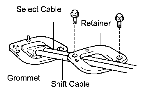 (f) Connect the top end of the select cable to the shift lever assembly and install the clip.