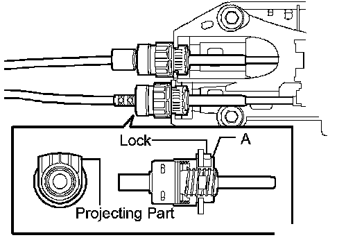 ^ After installation, make sure that the cable outer lock is projecting from A as shown in the illustration.