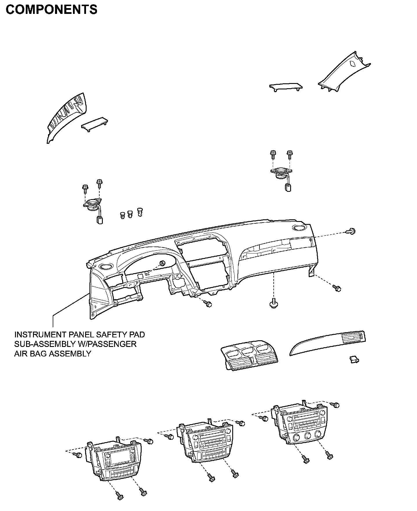 1. REMOVE INSTRUMENT PANEL SAFETY PAD SUBASSEMBLY W/PASSENGER AIR BAG ASSEMBLY