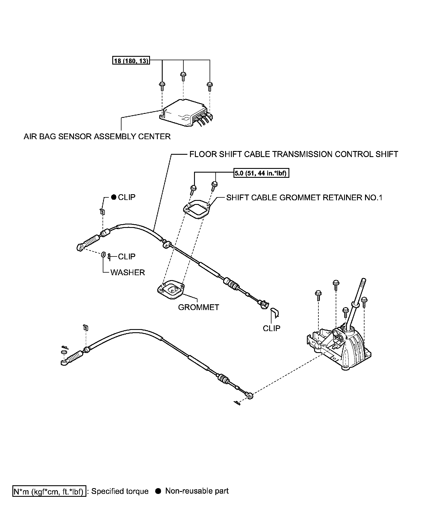 4. REMOVE FLOOR SHIFT CABLE TRANSMISSION CONTROL SHIFT