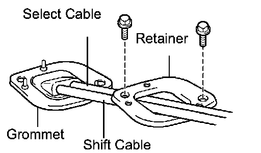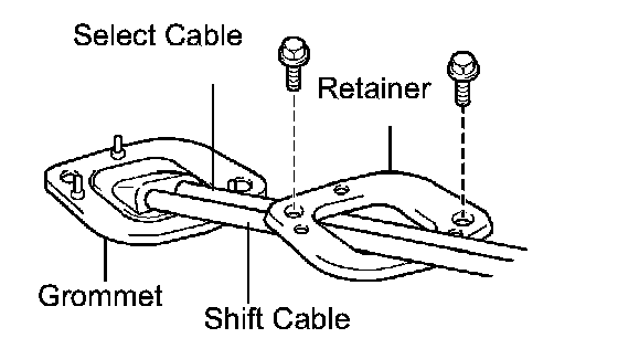 ^ The projecting part of the cable outer should face upward when the shift cable is connected.