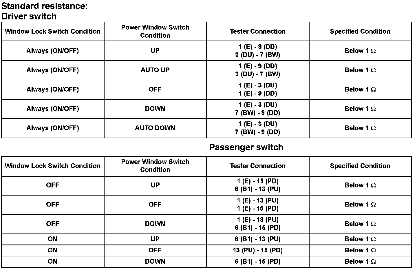 INSPECTION1. INSPECT POWER WINDOW REGULATOR MASTER SWITCH ASSEMBLY