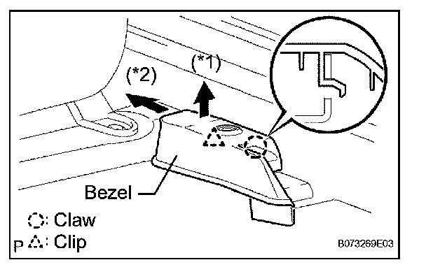 b. Slide the bezel rearward to disengage the claw and remove the bezel (*2).