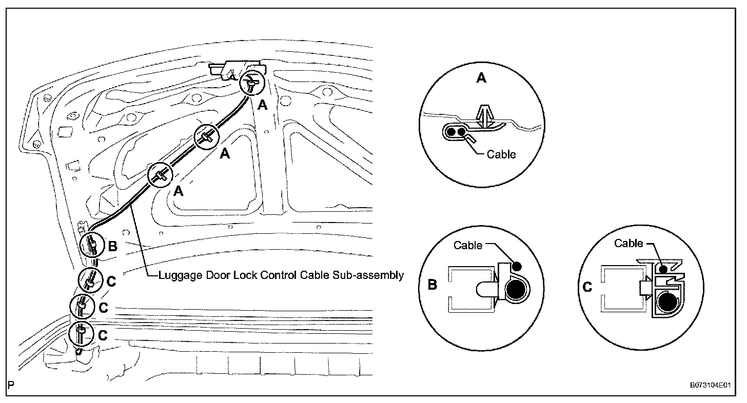 b. Remove the cable as shown in the illustration (luggage compartment door side).