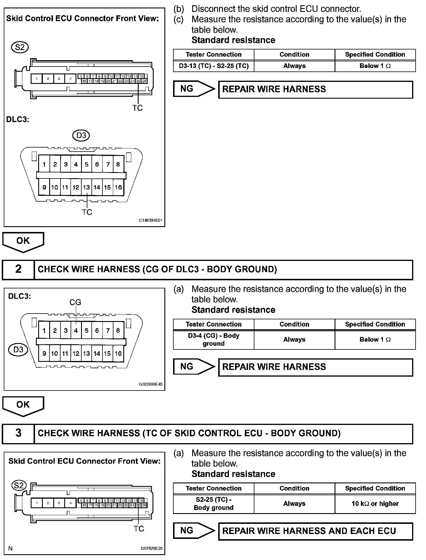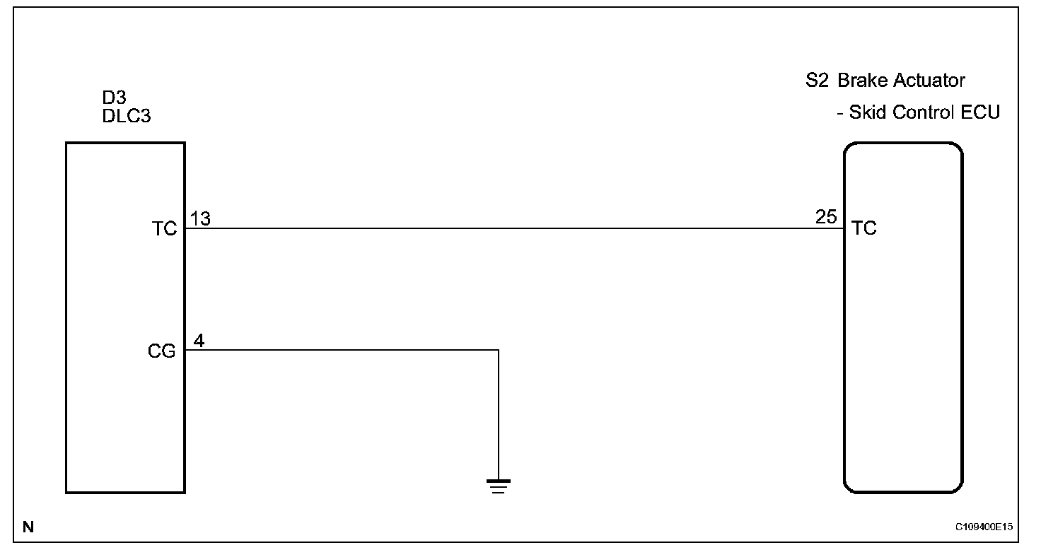 Connecting terminals TC and CG of the DLC3 causes the ECU to display the DTC by flashing the ABS warning light.