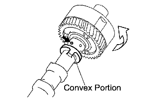 (e) Under the condition above, check that the VVT-i can be turned by hand to the advanced angle side, the direction of the white arrow in the illustration.