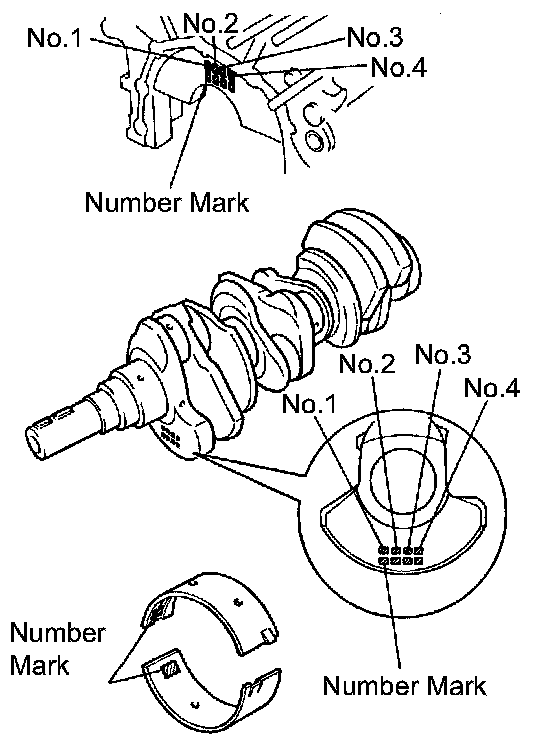 HINT: EXAMPLE: Cylinder block imprinted number mark is 06 Crankshaft imprinted number mark is 08