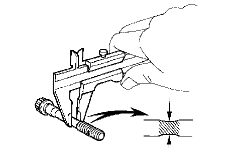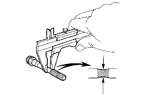 If the diameter is less than the minimum, replace the bolt.