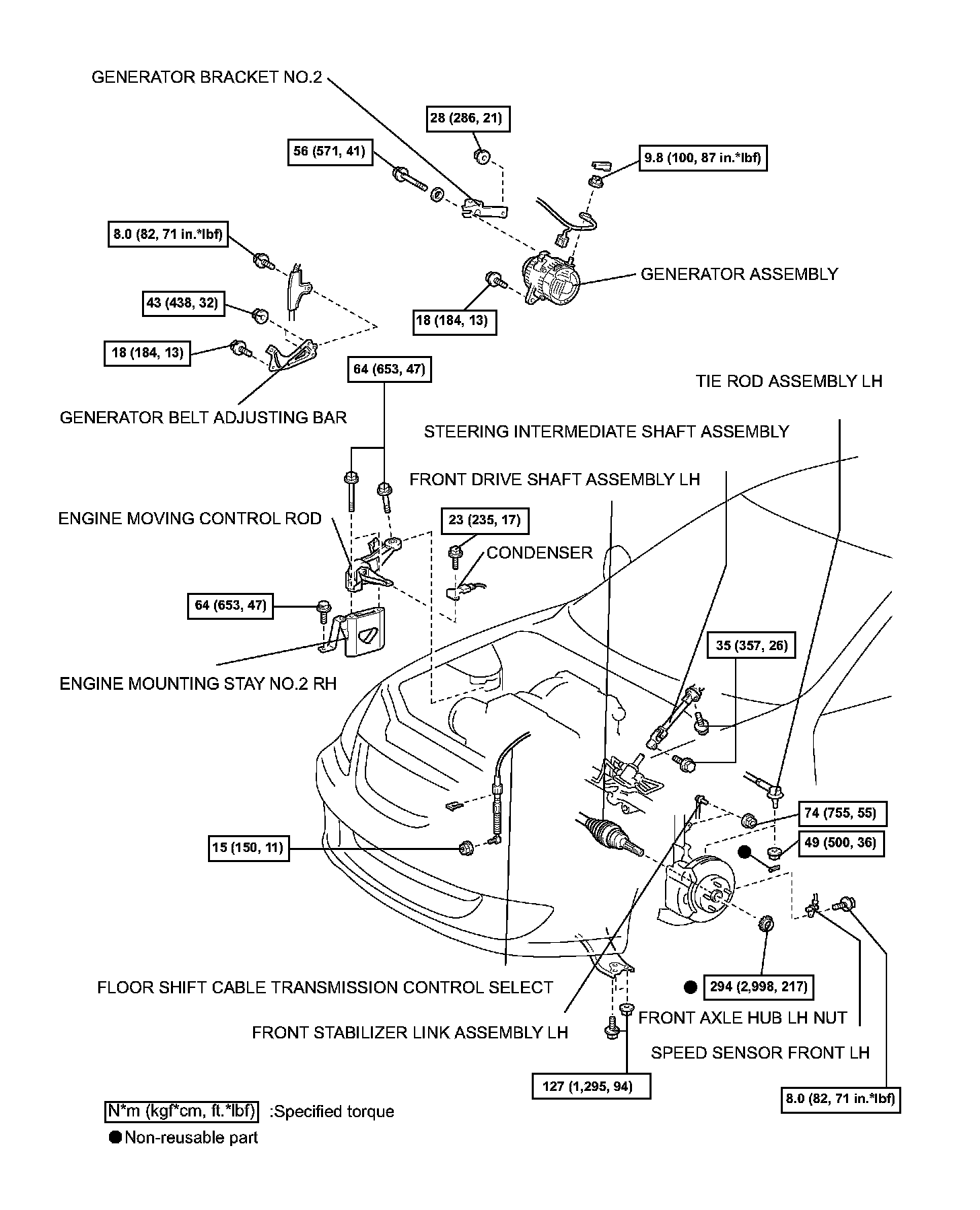 Torque: Bolt D and Nut 32 Nm (326 kgf-cm, 24 ft. lbs.)
