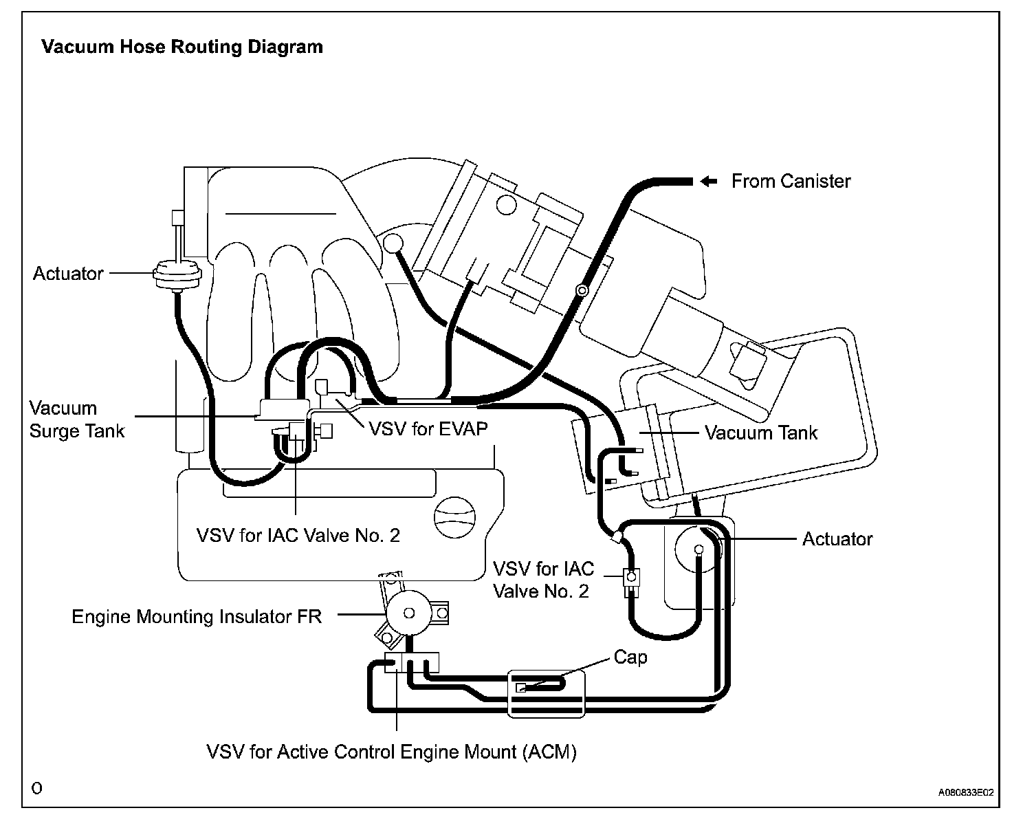 (b) Install the intake air surge tank and emission control valve bracket with the 2 nuts.