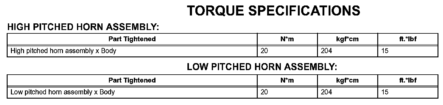 Horn - Torque Specifications: