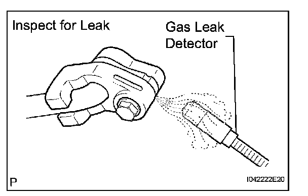 c. Using a gas leak detector, inspect for refrigerant leak from the refrigerant lines.